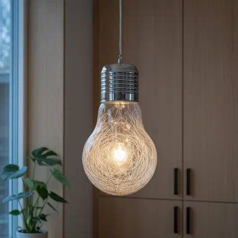 Bulb er en moderne og stilig taklampe med en lyskilde som i seg selv blir et dekorativt element. Den har klart glass med en spennende wiredetalj på innsiden som skaper et unikt lys- og skyggeeffekt. Høyden kan enkelt justeres etter behov, noe som gir fleksibilitet ved montering.