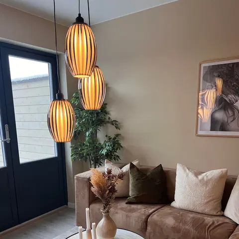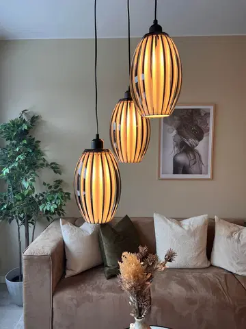Calamaris II taklampe i sort utførelse tilbyr en stilren og moderne løsning for belysning i hjemmet ditt. Denne pendellampen skiller seg ut med sine tre lyskilder plassert i varierende høyder, omgitt av elegante røykfargede lameller som myker opp lyset og skaper en behagelig atmosfære. Perfekt over spisebordet, i trappeoppgangen eller over sofabordet i stuen, gir denne lampen ikke bare funksjonelt lys, men også et estetisk løft til ethvert rom.