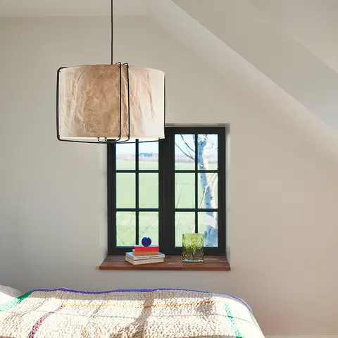 Cardine 50 pendel taklampe fra Dftp Nordlux byr på en moderne Japandi-stil som blander det beste fra japansk interiørfilosofi og nordisk minimalisme. Den lett krøllede papirskjermen er opphengt i tynne metalltråder og sørger for et behagelig, diffust lys som skaper en rolig atmosfære. Med en høyde på 37,5 cm og diameter på 50 cm, passer denne lampen perfekt i stuer og kjøkken.