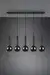 Lampen er produsert i robust metall og glass av høy kvalitet, noe som gir en holdbar konstruksjon og et varig design. Den 150 cm høye skinnen med pendelarmene har en bredde på 20 cm og en lengde på 115 cm, noe som gir god plass til å spre lyset jevnt utover.