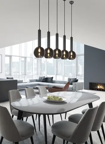 Clayton er en moderne taklampe med fem justerbare pendler. De røykfargede glasskuplene gir et stilrent og eksklusivt uttrykk som vil passe inn i de fleste hjem. Med en dimbar funksjon kan du regulere lysstyrken etter behov og skape den perfekte atmosfæren.