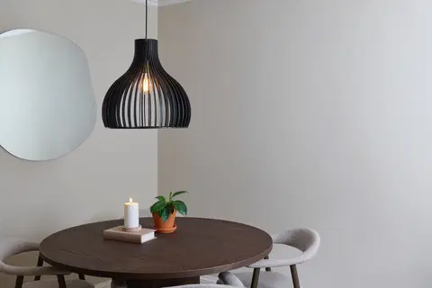 Med en høyde på 46 cm passer Daniella taklampe perfekt over spisebordet eller i stuen, og gir et sofistikert preg til enhver interiørstil – fra minimalistisk til industrielt. Den sorte fargen gir lampen en tidløs eleganse som enkelt kan matches med ulike fargepaletter og møbler.