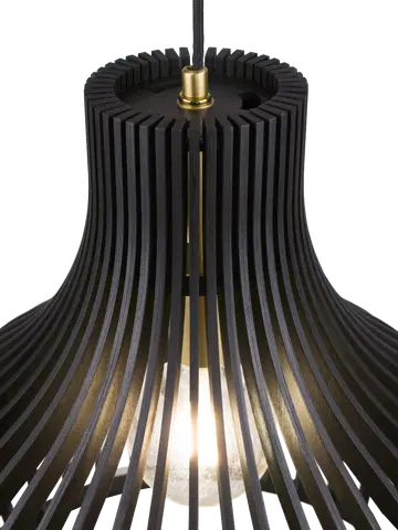 Gi hjemmet ditt et moderne og elegant uttrykk med Daniella taklampe i sort. Denne taklampen har en unik, åpen design som kombinerer stil og funksjonalitet på en vakker måte. Lampen er laget med buede lameller som gir et spennende spill av lys og skygge når lampen er tent, noe som skaper en lun og innbydende atmosfære i rommet.