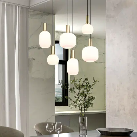 Diva taklampe med 6 pendler er en elegant og moderne belysningsløsning som kombinerer unike former med klassiske materialer. Lampen består av seks pendler i ulike fasonger, alle med hvitt glass som gir et mykt og diffust lys. Messing pæreholdere tilfører et luksuriøst preg, mens kontrasten mellom det hvite glasset og de varme messingdetaljene skaper en sofistikert look. Lampen har en høyde på 150 cm, bredde på 35 cm og lengde på 92 cm. Den er justerbar og dimbar med dimbare pærer, noe som gir full kontroll over lysstyrken. Diva er laget av metall og glass, og har en messing farge. Den er utstyrt med E27-sokkel for 6 lyskilder, og har en spenning på 230V. Lampen er dobbelt isolert og leveres med 2 års garanti. Vekten er 6 kg. Denne taklampen fra Trio Lighting passer utmerket over spisebordet.