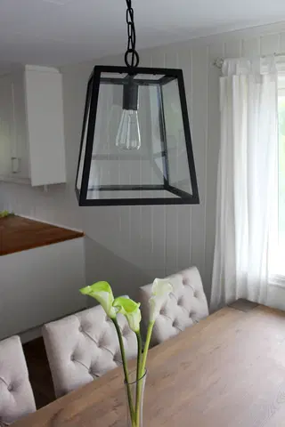Den solide metallinnrammingen står i flott kontrast til det klare glasset, og sammen skaper de en stilren og tidløs lampe. Dovre-serien finnes i flere utførelser, så det er lett å finne en modell som passer din interiørstil.