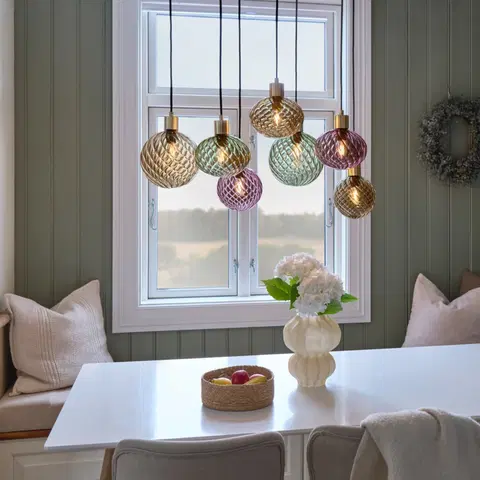 Den varme messingtonen i opphengene gir en eksklusiv kontrast til glasset og bidrar til en lun atmosfære i rommet. Med sin lengde på 87 cm passer Elara perfekt over spisebord, kjøkkenøy eller i stue med god takhøyde, der den virkelig får komme til sin rett.