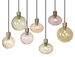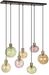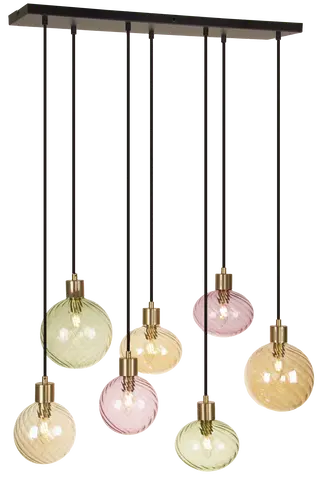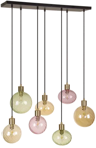 Elara er en iøynefallende og moderne taklampe som fungerer like mye som et dekorativt blikkfang som en effektiv lyskilde. Lampen har en rektangulær takplate med syv hengende lyskilder i ulike høyder, som skaper et dynamisk og elegant uttrykk. De runde glasskjermene i myke, flerfargede toner gir lampen et lekent, men samtidig sofistikert preg.