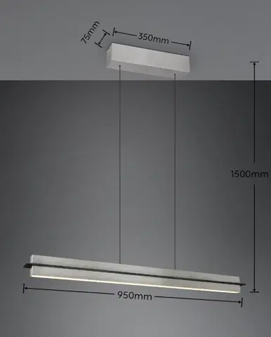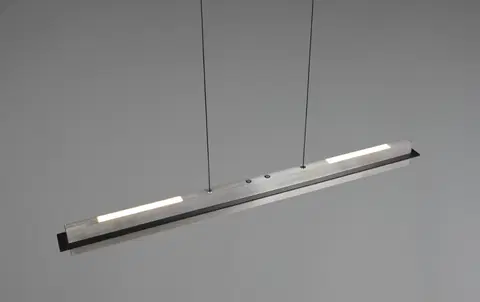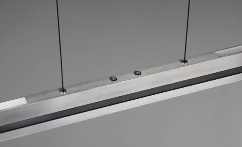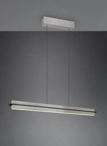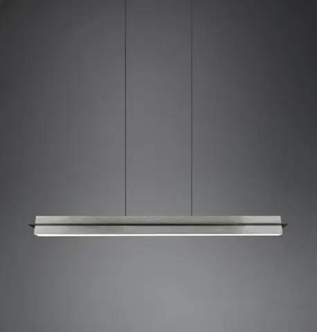 Emerson er en moderne og minimalistisk taklampe som kombinerer elegant design med avansert funksjonalitet. Lampen består av en slank, horisontal lysarmatur i børstet nikkel matt metall, opphengt i to tynne kabler fra en rektangulær takboks. Det stilrene uttrykket gjør den perfekt for moderne hjem og kontormiljøer.