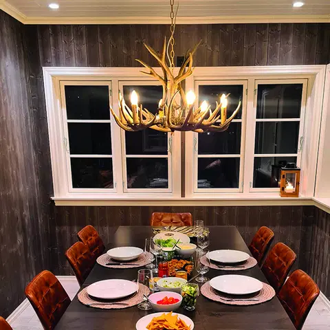 Denne taklampen fra Nova Life fanger vill naturinspirert stil med sitt unike gevir-design. De seks lyskildene i harpiks kaster et varmt og hyggelig lys, perfekt for å skape en koselig atmosfære i spisestuen eller stuen. Lampen har en justerbar opphengslengde og dimbare lyskilder, slik at du kan tilpasse belysningen etter behov.