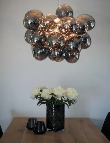 Gross Grande fra By Rydéns er en eksklusiv taklampe som skaper en herlig stemning i rommet. Lampen består av 32 glasskuler i røykfarget finish, som sammen former en unik og stilfull helhet. Med en diameter på 62 cm vil denne lampen være et flott blikkfang i enhver stue eller spisestue.