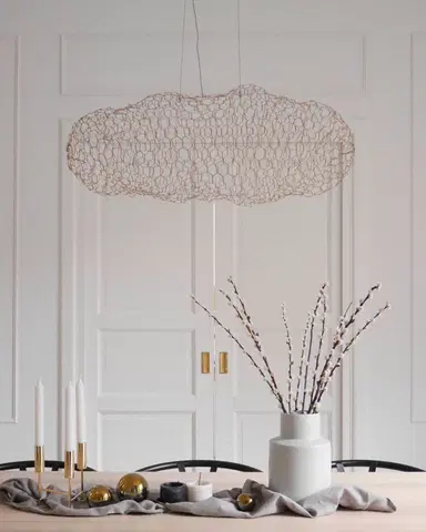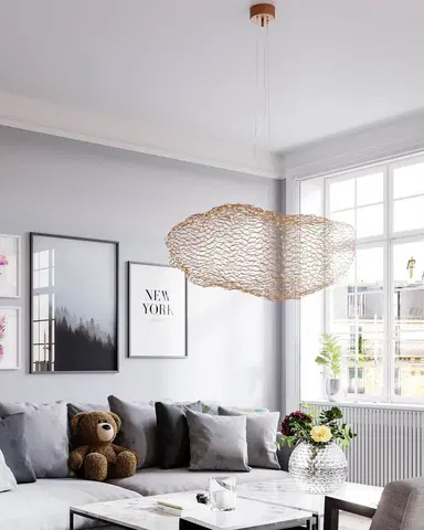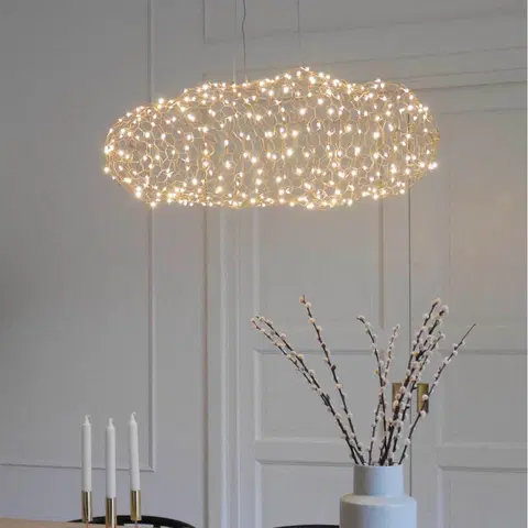 Hayden LED-taklampe i gull er en stilig og moderne løsning for ditt hjem. Denne elegante lampen med den organiske formen er ikke bare en lyskilde, men også et dekorativt element som kan heve ethvert rom. Med sin unike design, som minner om en svevende sky av små LED-lys, skaper den en magisk atmosfære når den lyser opp.