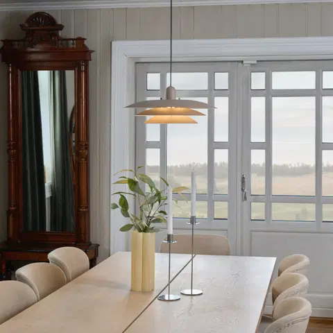 Den brede skjermen på 45 cm gjør lampen ideell over spisebordet eller i stuen, hvor den gir godt lys uten å blende. De flere lagene i skjermen skjermer lyskilden og bidrar til et mykt, diffust lys som gir rommet en varm og innbydende stemning.
