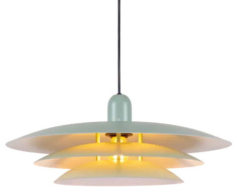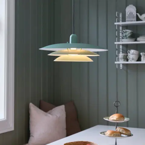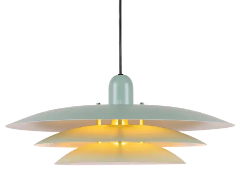 Gi rommet et stilrent og moderne uttrykk med Joakim II taklampe i en dempet grønnfarge. Lampens elegante, lagdelte skjermdesign gir et spennende visuelt uttrykk samtidig som lyset fordeles jevnt og behagelig i rommet.