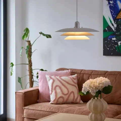 Den brede skjermen på 45 cm gjør lampen ideell over spisebordet, sofabordet eller i andre oppholdsrom hvor du ønsker godt lys uten blending. De flere lagene skjermer lyskilden og skaper et mykt, diffust lys som gir en lun og innbydende atmosfære.