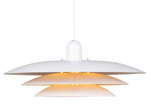 Gi rommet et rent og tidløst uttrykk med Joakim II taklampe i klassisk hvit utførelse. Det elegante, lagdelte designet gir lampen et moderne preg, samtidig som det sørger for en behagelig og jevn spredning av lyset.