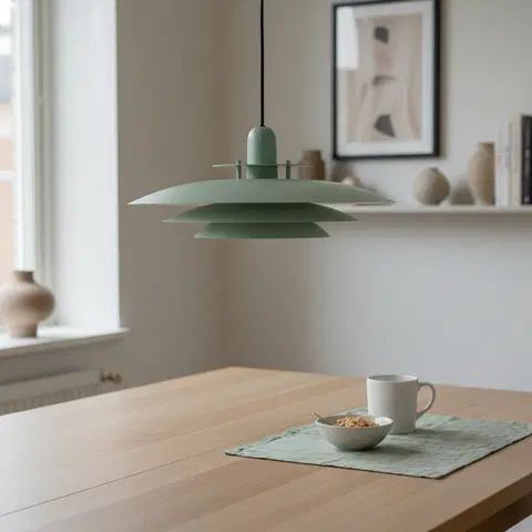 Elegant taklampe med skandinavisk design i grønn metallfinish