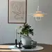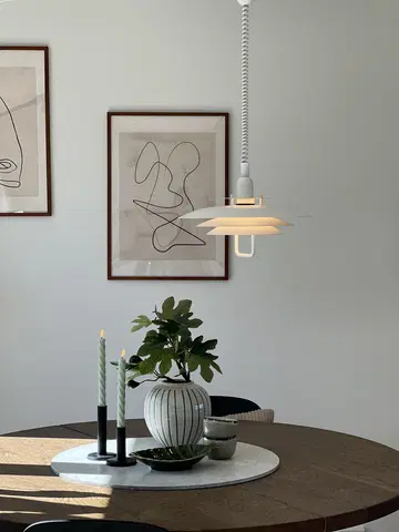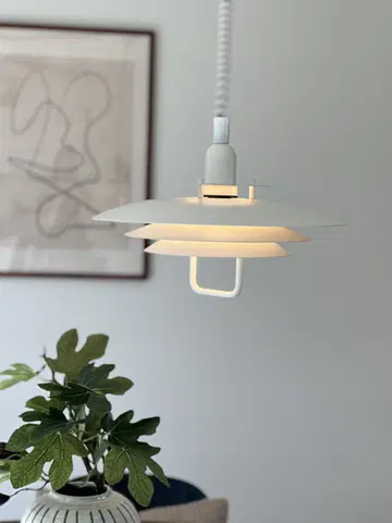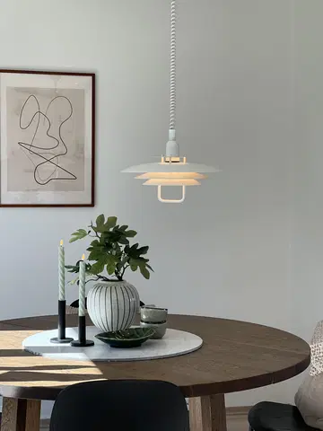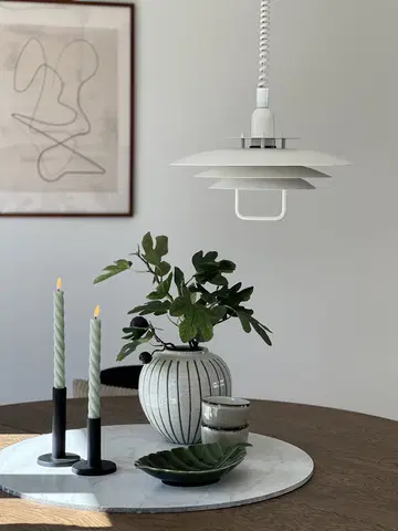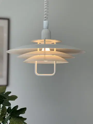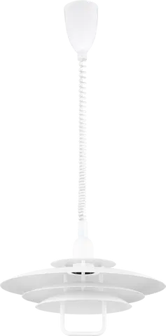 Lampen er laget av metall i en klassisk hvit farge som passer inn i de fleste interiører. Den har en dimbar funksjon som lar deg regulere lysstyrken ved hjelp av dimbare pærer. På den måten kan du skape den stemningen du ønsker, enten det er behov for godt arbeidslys eller en mer dempet atmosfære.
