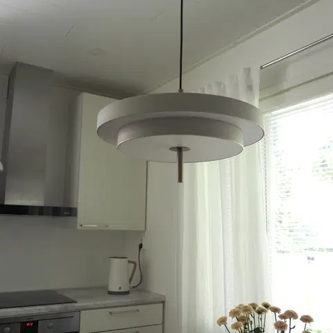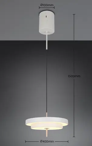 Med en effekt på 34,5W og en lysstyrke på 4000 lumen, gir lampen kraftig og effektiv belysning. Lysfargen kan justeres i tre trinn (2300K, 3000K og 4000K) med en bryter på takkoppen, og lampen kan dimmes i 3 steg med standard av/på lysbryter.