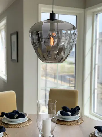 Kelly taklampe i røykfarget utførelse fra Nova Life, er en stilig og moderne løsning for belysning. Denne pendellampen kombinerer funksjonalitet med et unikt design, noe som gjør den til en ideell kilde for både direkte og atmosfærisk lys. Med sin pendelkonstruksjon henger lampen elegant fra taket, perfekt over et kjøkkenbord, spisebord eller sofabord i stuen.