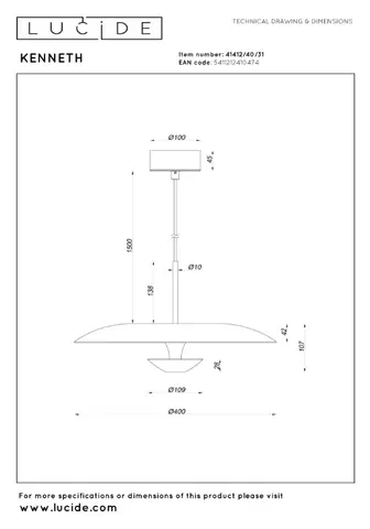 Møt Kenneth pendellampe – et stilfullt blikkfang som elegant kombinerer eleganse og funksjonalitet. Med en generøs diameter på 40 cm og en maksimal høyde på 170 cm trekker denne moderne pendellampen straks oppmerksomheten over spisebordet eller i stuen. Den integrerte 12W LED-lyskilden gir varmt hvitt lys (2700K), og skaper en koselig og innbydende atmosfære.
