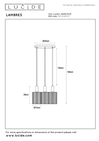 LAMBRES taklampe med tre pendler er et ekte blikkfang som tilfører eleganse og varme til ethvert rom. Hver pendel har et stilrent rammeverk av fine metallstaver som omslutter en frostet glassdiffusor. Resultatet er et mykt og behagelig varmt hvitt lys som skaper en innbydende atmosfære.