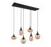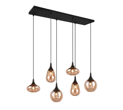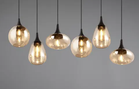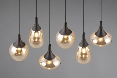 Lumina taklampe fra Trio Lighting er et vakkert blikkfang for stuen din med sine elegante glassskjermer i ulike former. Lampen har en unik kombinasjon av metall og glass som skaper en vakker og moderne lysatmosfære. Takket være den matt sorte fargeskalaen og de gyldne glassskjermene, er det lett å integrere denne pendellampen i eksisterende interiørkonsepter.