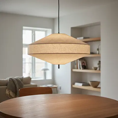 Luxe taklampe er en stilren og moderne pendel som gir et mykt og varmt lys til rommet. Med en generøs diameter på 65 cm blir lampen et elegant blikkfang over spisebordet, i stuen eller over sengen - perfekt for å skape en lun og innbydende atmosfære.