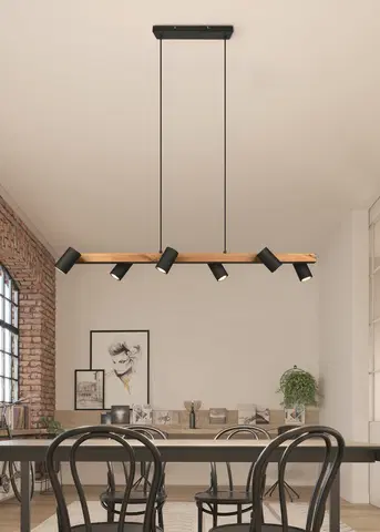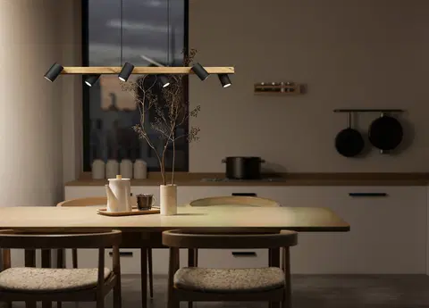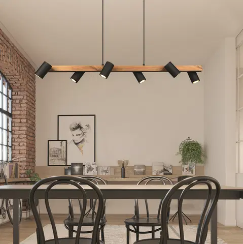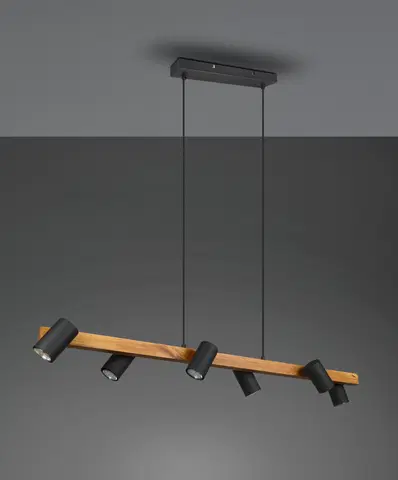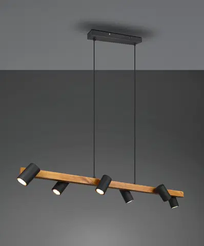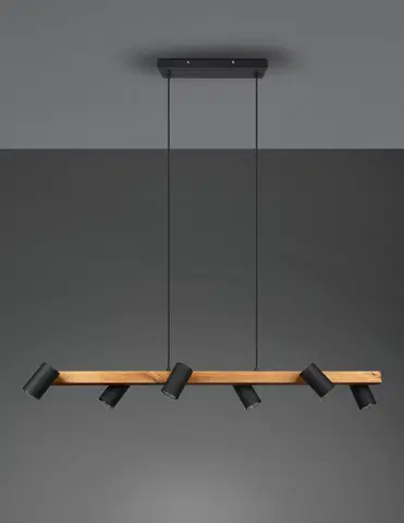 Marley er en taklampe i et lekent design med treramme og sorte spotter, perfekt over middagsbordet. Høyden kan justeres etter eget ønske.