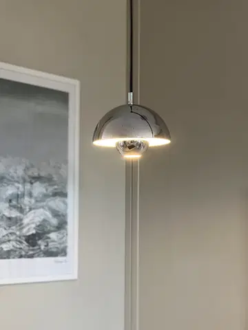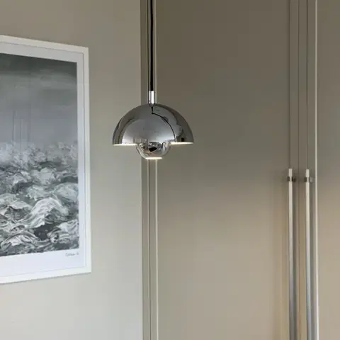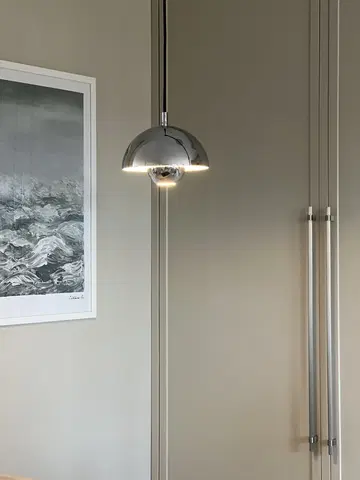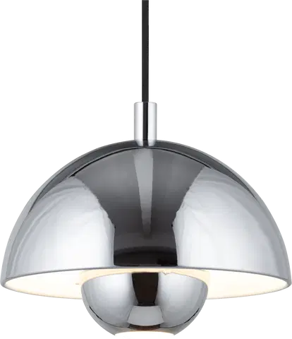 Mycena pendel i krom metall er det perfekte valget for deg som søker en pendel som kombinerer funksjonalitet med et tidløst design, inspirert av retrostil. Denne lampen gir et mykt og behagelig lys, ideelt hengende over nattbordet, kjøkkenøyen, som vinduspendel eller flere hengende i rekke over spisebordet. Med sin lekre farge, passer lampen naturlig inn i de fleste interiørstiler, enten det er moderne eller mer tradisjonelt.