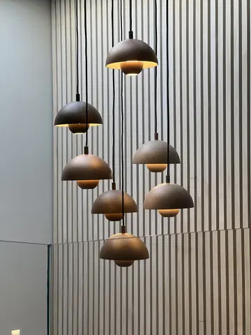 Mycena taklampe er en moderne og elegant lampe med et unikt flerfarget design som passer perfekt inn i ethvert interiør. Den kombinerer funksjonalitet og stil, og gir et varmt og innbydende lys til rommet.
