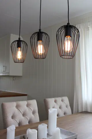 Newtown er en flott lampe i rustikk design med tre hengende pendler. Egner seg godt over spisebordet! For best effekt av lampen anbefales bruk av dimmer.