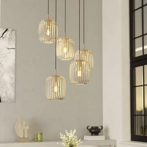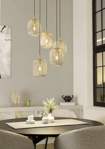 Romazzina rondell taklampe fra EA/EGLO er en dekorativ og justerbar lampe som gir mye lysspill i rommet. Med sine metallspiler skaper den et lekkert og spennende lysbilde når lyskildene er tent. Lyskilder medfølger ikke, men du kan enkelt endre lysbildet ved å bytte mellom klare og matte pærer på opptil 40W i de fem E27-soklene.