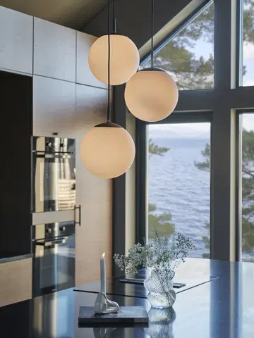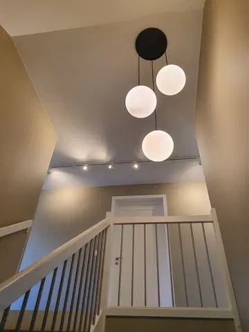 Leter du etter en lampe som kombinerer funksjonalitet med et stilrent design? Rondell Ball taklampe fra Nova Life er det perfekte valget for deg. Denne taklampen har tre opalfargede glasskupler som sprer et mykt og behagelig lys i rommet, ideelt for en trappeoppgang, stue eller et annet rom med god takhøyde. Med sitt moderne og minimaliatiske utseende passer denne lampependelen perfekt til mange ulike interiørstiler.