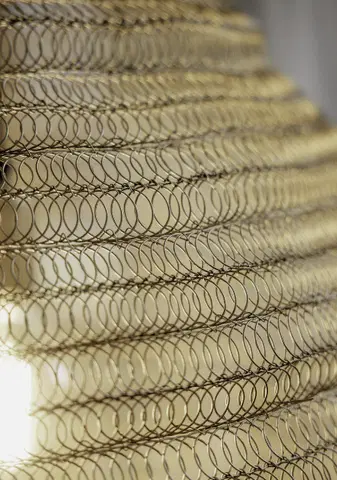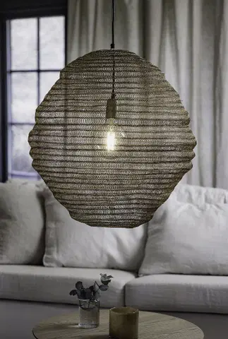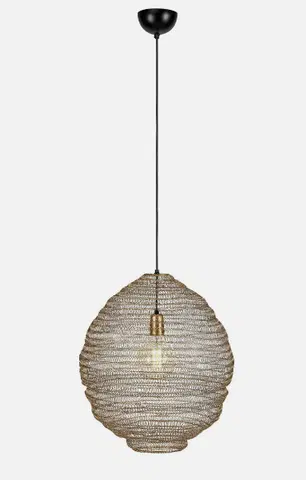Den rustikke Tazza taklampen fra Markslöjd har en leken og organisk form som minner om en bikube. Det gullbelagte metallmaterialet skaper en varm og koselig atmosfære i rommet. Lampen har en diameter på 50 cm og en total høyde på 55 cm. Velg en skarp lyskilde for å fremheve de spennende skyggeeffektene gjennom den mønstrede skyggen.