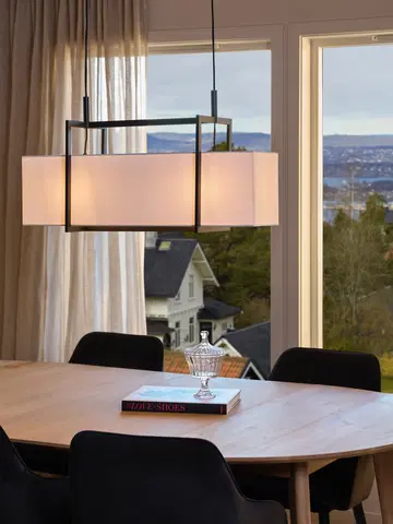 Trysil taklampe har en rektangulær form og er utstyrt med en elegant tekstilskjerm, noe som gir den et stilrent og tidløst uttrykk. Med en lengde på 80 cm er denne lampen ideell for å henge over spisebordet, hvor den gir en jevn og behagelig belysning som skaper en varm og innbydende atmosfære under måltider. Den passer også utmerket på hytta, der dens enkle design og myke lys bidrar til en koselig og avslappet stemning. Trysil taklampe er et funksjonelt og dekorativt valg som komplementerer både moderne og tradisjonelle interiørstiler.