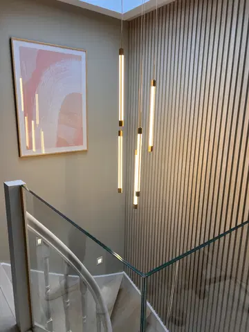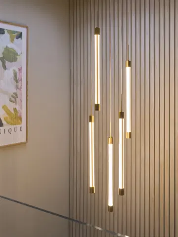 Tube 5 LED rondell taklampe fra Stone Field er en eksklusiv og dekorativ taklampe med integrert LED-belysning. Med sitt moderne design og imponerende dimensjoner på 210 cm høyde og 35 cm diameter, vil denne lampen utvilsomt gi et stilfullt preg til ethvert rom. Lampen har et justerbart oppheng på 170 cm som gjør at du enkelt kan tilpasse lysretningen etter behov.