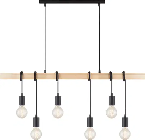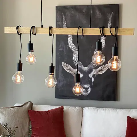 Verlin taklampe fra Nova Life kombinerer naturlig tre og sort stål i et stilrent og moderne design. Med seks E27-sokler kan du velge pærer med opptil 40W effekt (medfølger ikke) for å skape akkurat den stemningen du ønsker. Lampen er dimbar og kan justeres i lengden, noe som gir deg full kontroll over belysningen.