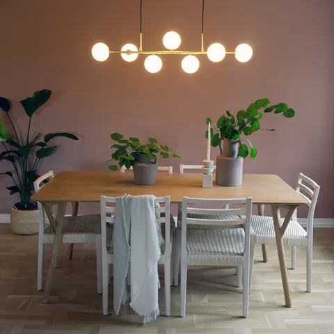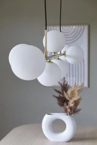 Lampens hvite glasskupler sørger for et mykt, men klart lys, optimalisert for LED-lyskilder. Dette sikrer ikke bare energieffektivitet men også en behagelig atmosfære i hjemmet ditt. Den matte messingfinishen gir lampen et tidløst, men eksklusivt preg, noe som betyr at den vil komplementere ulike interiørstiler.