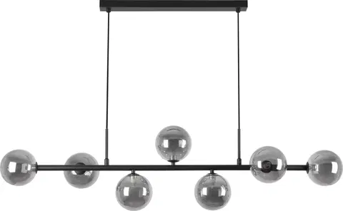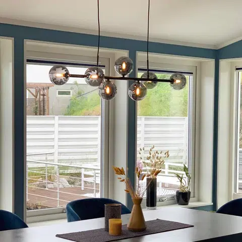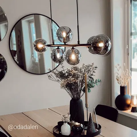 Vernon taklampe fra Stone Field er en elegant taklampe som passer godt til kjøkken, stue og over spisebord. Lampen har en røykfarget metallramme med syv glasskuler i et moderne design. Den er dimbar med dimbare pærer, noe som gir deg mulighet til å skape den stemningen du ønsker. Med en høyde på 27,5 cm og en lengde på 111,5 cm, er denne lampen stilren og fleksibel.