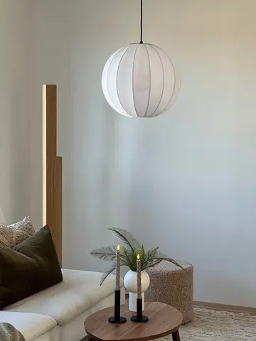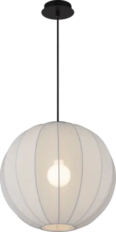 Wolf er en flott taklampe i rund form og med elastisk hvit stoffskjerm. Lampen gir et behagelig lys, og passer godt inn på et soverom eller over et spisebord.