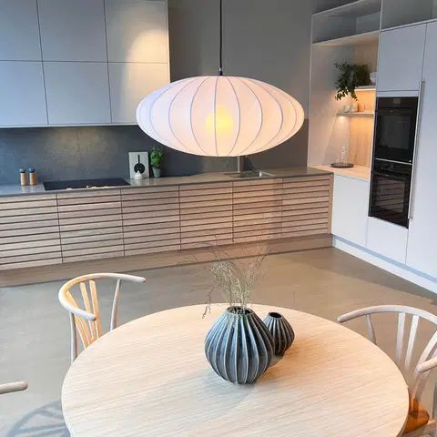 Wolf taklampe i hvit utførelse er det perfekte valget for deg som ønsker en lampe som kombinerer stil og funksjonalitet. Denne pendellampen har en elastisk stoffskjerm som mykt diffuserer lyset, noe som skaper en behagelig atmosfære i rommet. Taklampen er ideell for bruk både på soverommet, over spisebord, og i andre oppholdsrom hvor du ønsker et lunt uttrykk.