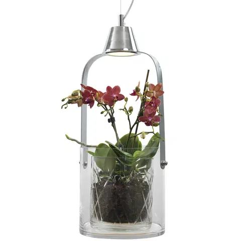 Gro er en unik pendellampe som kombinerer lys og dekor på en elegant måte. Lampen har en moderne design med kromdetaljer og en sylinderformet glasskuppel som gir et rent og stilfullt uttrykk. Det spesielle med Gro er at den har plass til dekorative elementer, som for eksempel en plante eller blomster, som gir rommet et personlig og levende preg.