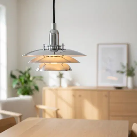 Elegant pendel i moderne kromfinish – gir et stilfullt og reflekterende preg