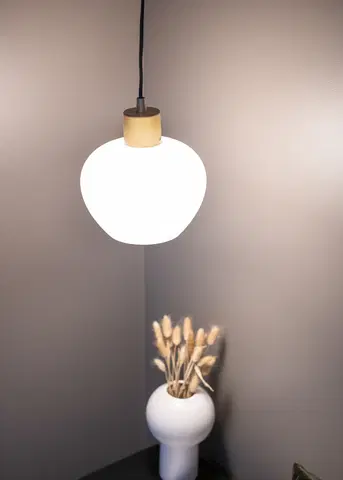 Kelly er en elegant pendel fra Nova Life med et stilrent design i matt messing og shiny opal glass. Denne bestselgeren i Kelly-serien kommer med 5 meter stoffledning og støpsel, og passer utmerket som vinduspendel. Glasset er munnblåst, så luftbobler kan forekomme, men er ikke en feil.