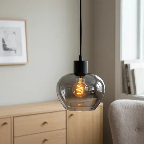 Kelly pendel fra Nova Life er en elegant og tidløs lampe med vakkert røykfarget, munnblåst glass. Denne hengende taklampen vil kaste et dempet og behagelig lys i rommet, og passer perfekt i vinduet, en mørk krok, eller hengende over kjøkkenøya. Med sin stilrene design i metall og glass vil Kelly gi et eksklusivt uttrykk til interiøret.