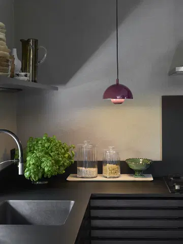Med en diameter på 20 cm og en høyde på 16 cm, er Mycena-pendelen kompakt nok til å passe de fleste rom. Den er utstyrt med en E14-sokkel for én lyskilde på opptil 40 watt, og leveres med en 3,5 meter lang opphengskjede med støpsel. Metallmaterialet og den lekre lilla fargen gir lampen et eksklusivt preg som vil tilføre rommet et stilfullt designelement.