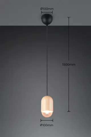 Nara taklampe fra TRIO kombinerer enkelhet og varme i et stilrent design. Lampen har en sylinderformet skjerm i naturlig treverk som gir et organisk og tidløst uttrykk. Den henger fra taket via en sort ledning og takfeste, og passer perfekt inn i både moderne og skandinaviske interiørstiler.