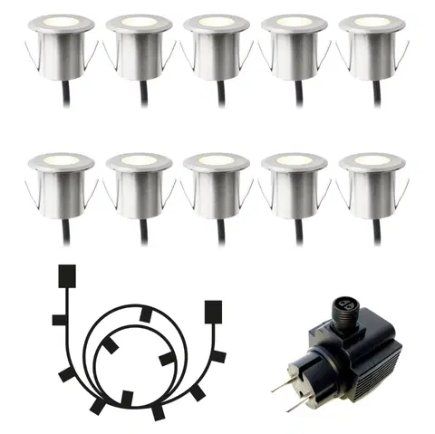 Pakken inkluderer 10 dekkslys, 10m grenkabel og en transformator (21w). Fyll gjerne på med flere lys og grenuttak om nødvendig.