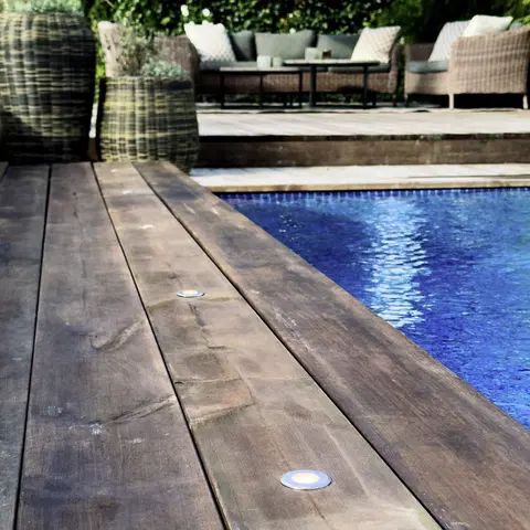 Dexter er en elegant liten dekkslampe i aluminium for innfelling i treterrasse eller stein. Også effektiv og funksjonell å bruke som markører på trinn eller avslutninger på ett plan i terrassen. På en bro eller langs en gangvei kan du skape en myk lysstrøm mens lyset viser vei.