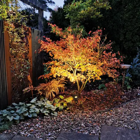 Den medfølgende spyden gjør det enkelt å feste lampen i bakken, samtidig som den 3 meter lange kabelen med hurtigkobling muliggjør enkel sammenkobling til resten av belysningssystemet. For et komplett utendørsanlegg kan du sette sammen lampene med forlengelseskabler, forgreninger og lyssensor etter behov.